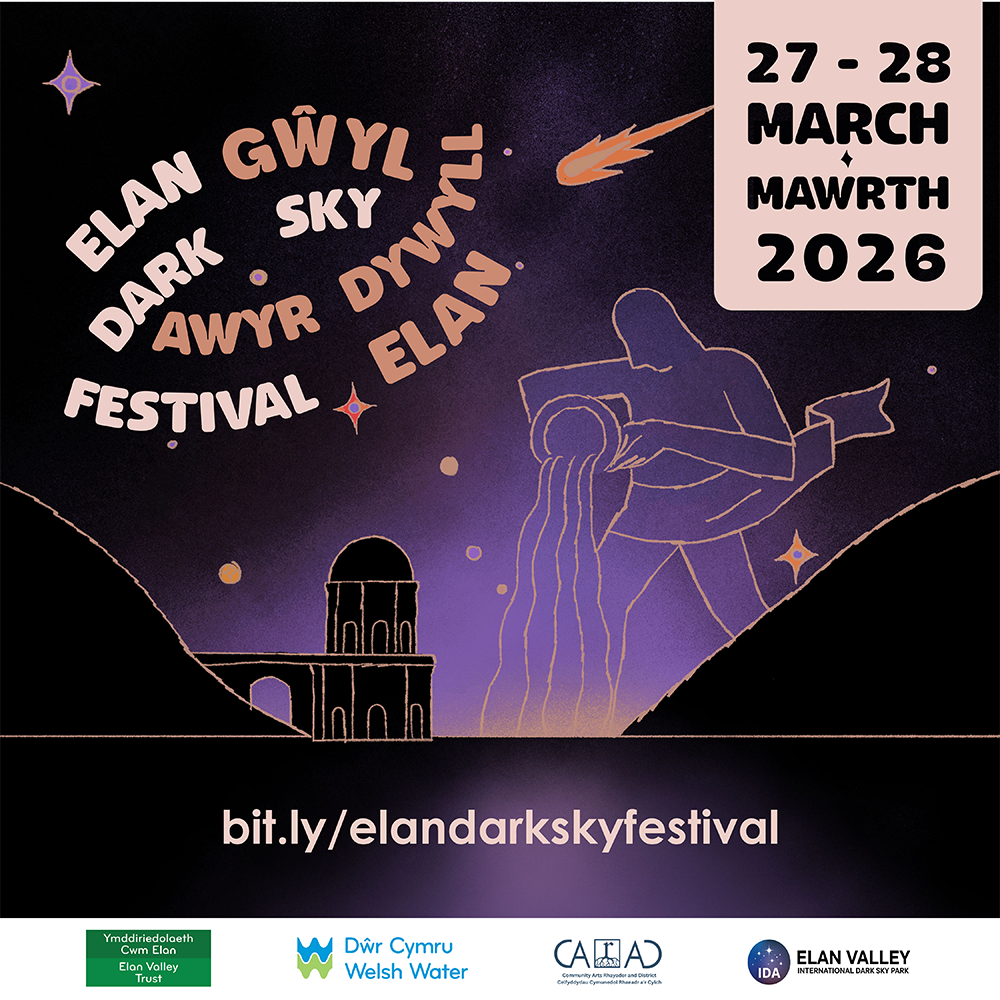 Bydd Cwm Elan yn cynnal dwy noson a diwrnod o weithdai, gweithgareddau a pherfformiadau sy’n dod ag awyr y nos yn fyw. O sioeau planetariwm, i deithiau cerdded bywyd gwyllt, cyngherddau a syllu ar y sêr, mae gennym raglen o ddigwyddiadau ar gyfer pob oedran.