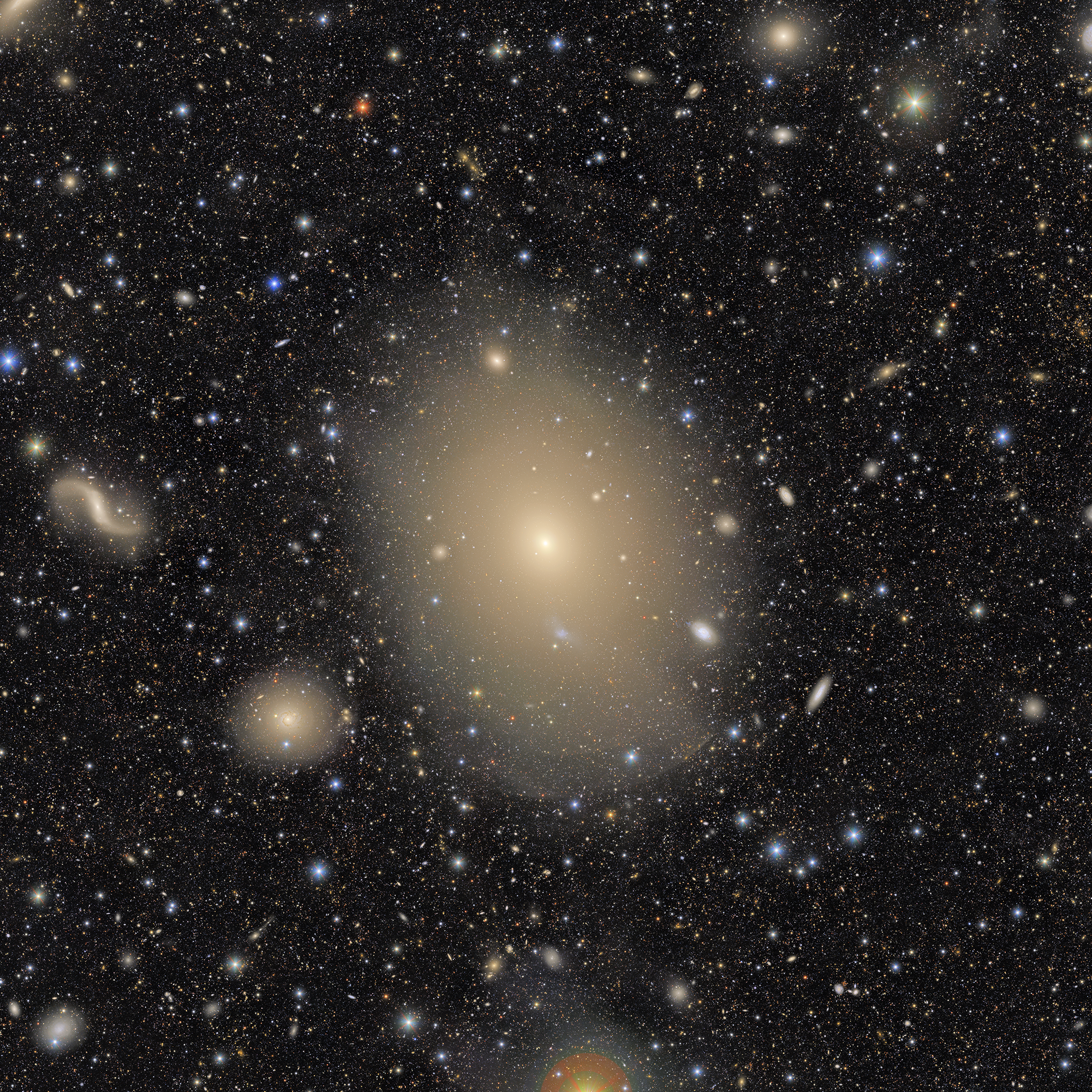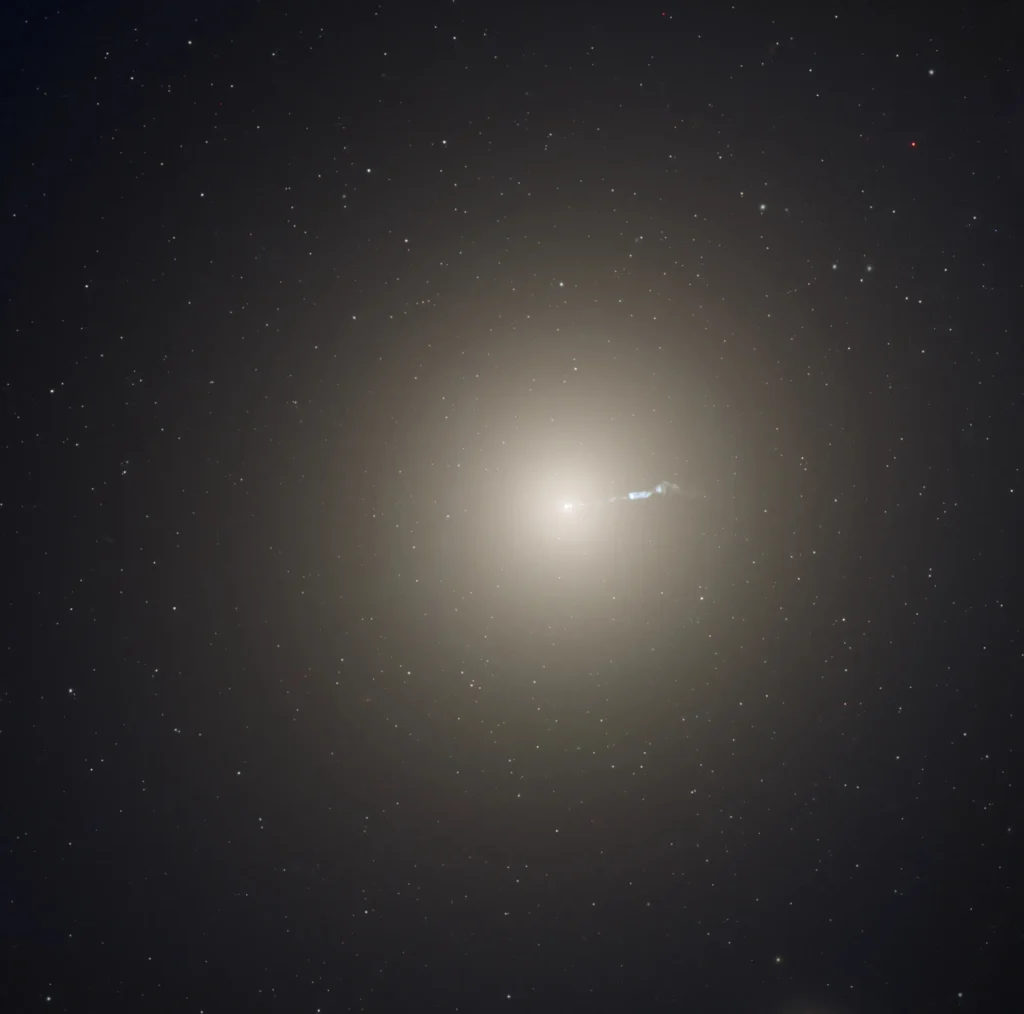 Although this object appears to be a faint, fuzzy patch of light in small telescopes, this massive galaxy contains several trillion stars, a staggering 15,000 globular clusters and a supermassive black hole. At 54 million light years distant it would take 84.2 billion years for us to travel there in our fastest human-made object. It also has a jet of energetic plasma emanating from the core and blasting out into space for 4,900 light years, which can only be captured through photography – although astronomer Otto Struve claimed to have seen it through the 100-inch Hooker telescope.